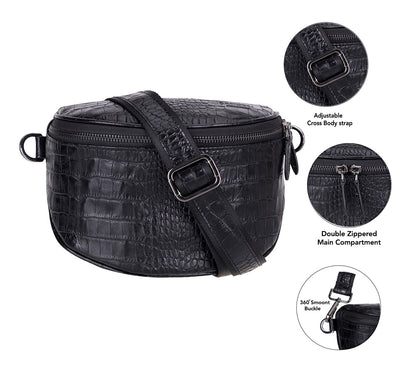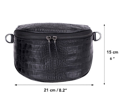 Make your style bold with this 100% genuine leather belt bag. Its high-gloss crocodile-embossed texture makes this crossbody bag both luxurious and handy for daily use. Its compact size offers multi-compartment convenience for carrying in a neat way, making it perfect for daily use and travel too