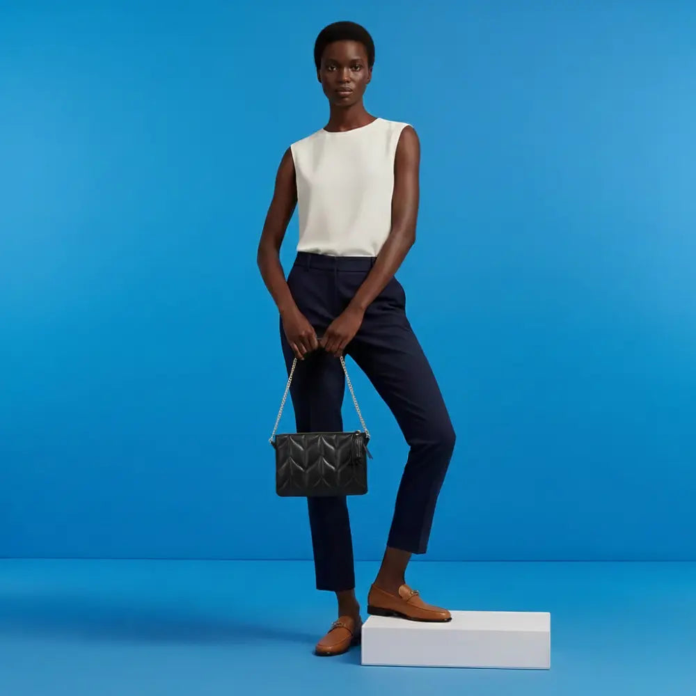 - Soft quilted surface featuring leaf stitch detail